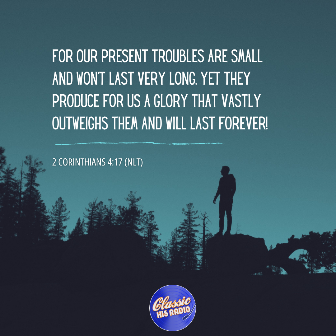 For our present troubles are small and won’t last very long. Yet they produce for us a glory that vastly outweighs them and will last forever!